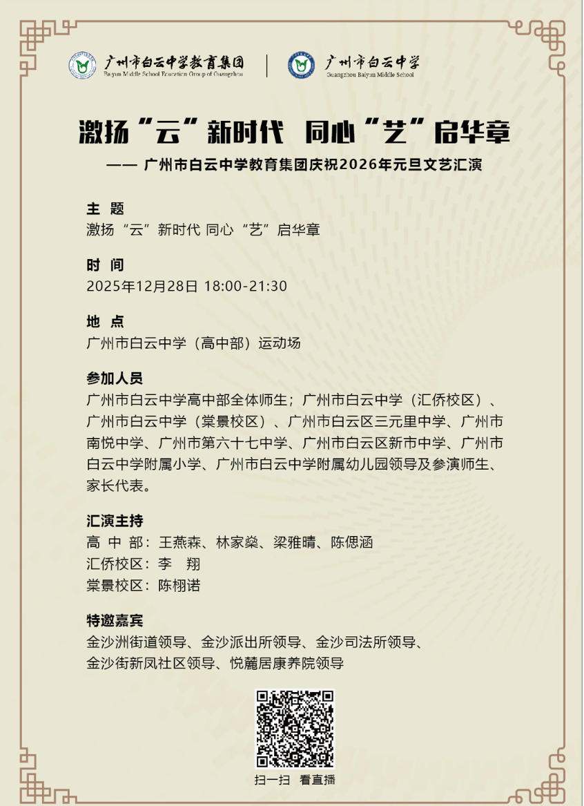 直播预告|广州市白云中学教育集团邀您共赏“云中之夜”庆祝2026年元旦文艺汇演